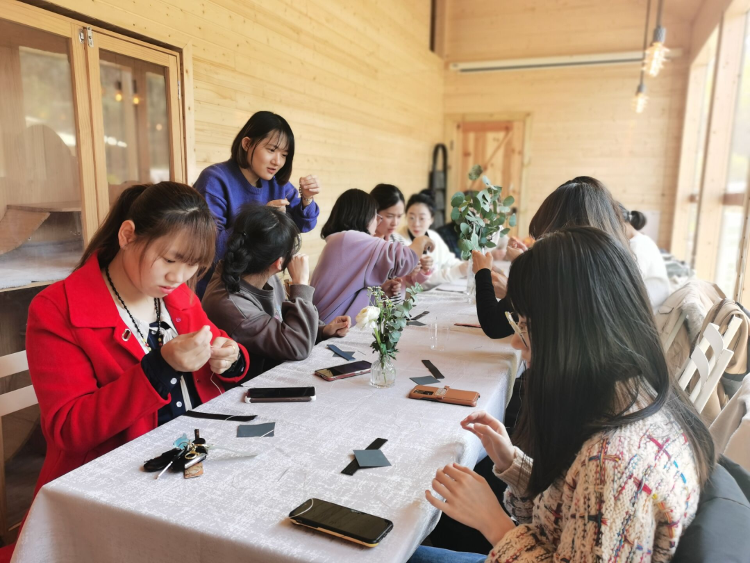 本次三八活動特設(shè)皮革制作課程,大家動手制作專屬自己的節(jié)日禮物,從反復打磨到巧手縫制,專業(yè)老師熱情普及皮革制作工藝,耐心傳授縫合技巧手法,各色精巧的鑰匙扣在慧心巧手間誕生,深受喜愛。